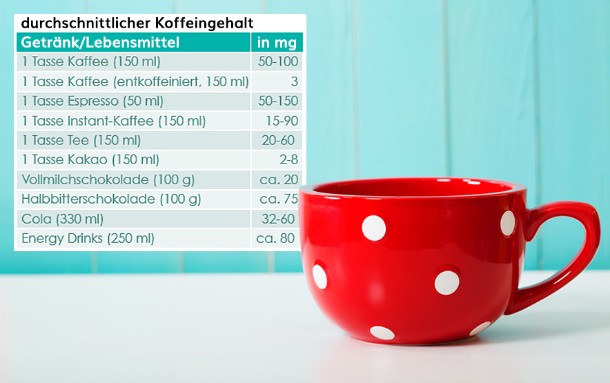 Aber wie viel Koffein tut gut? Darauf weiß die Europäische Behörde für Lebensmittelsicherheit EFSA Rat. Pro Tag können 400 mg Koffein bedenkenlos aufgenommen werden, was 4 bis 5 Becher Kaffee entspricht. Gesunde Erwachsene können also koffeinhaltige Getränke zunächst ohne Probleme als Genussmittel trinken.